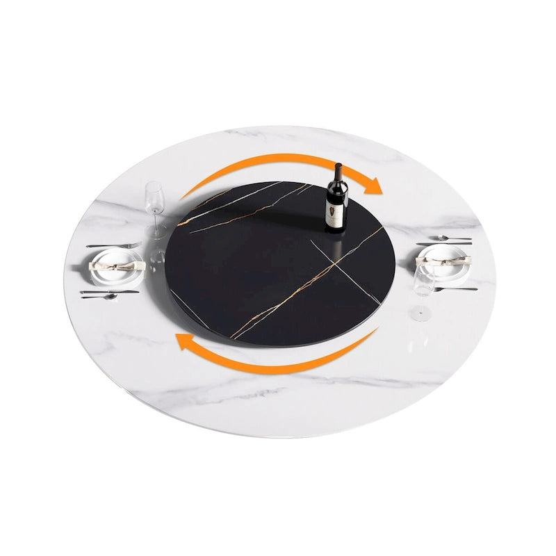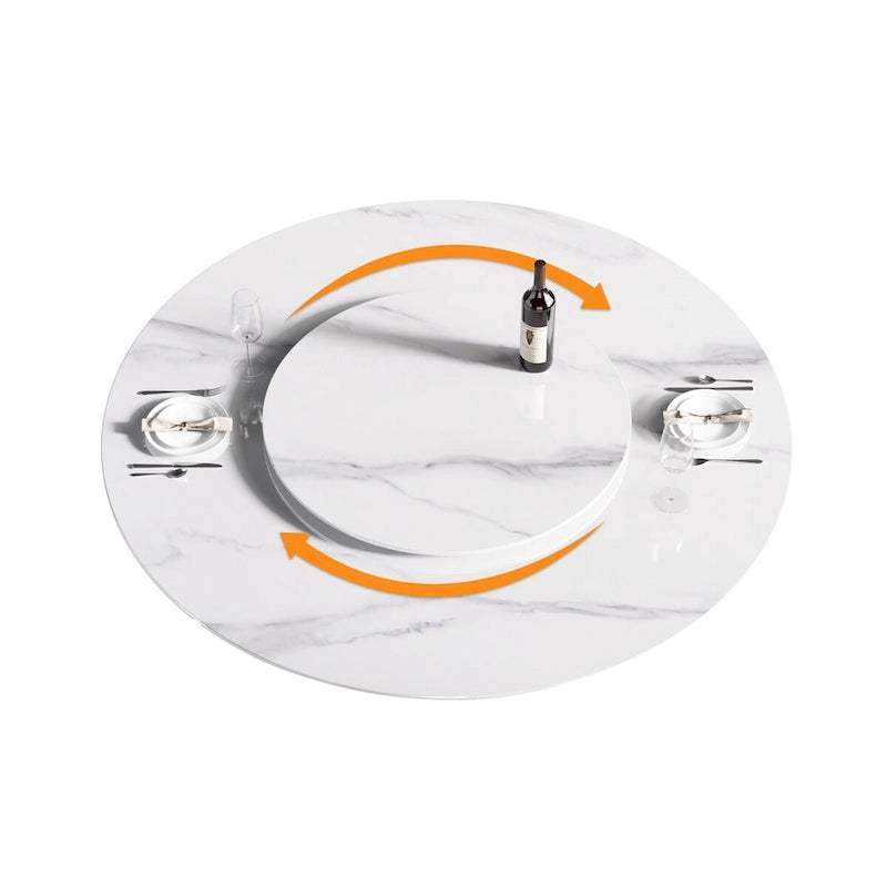 59 White Round Dining Table with Lazy Susan, Sintered Stone Tabletop - N/A