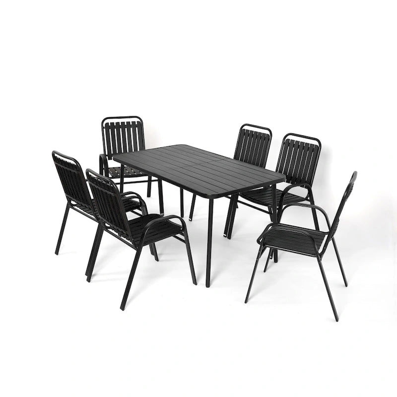 Bring comfort, durability, and versatile style to your outdoor or indoor dining space with this 7-Piece Patio Dining Set. Designed with a weather-resistant steel table, ergonomic plastic chairs, and plush polyester cushions, this set provides the perfect combination of functionality and elegance for gardens, patios, balconies, or dining rooms.