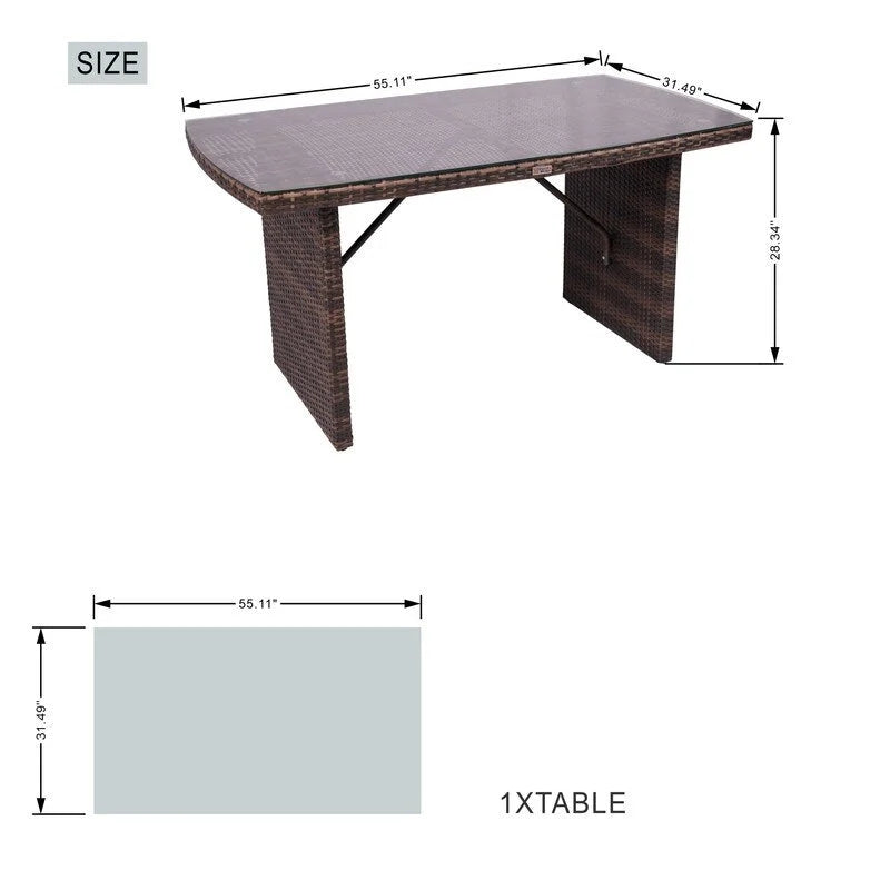 - Table: 55.12 x 31.5 x 28.34 with 0.2 tempered glass