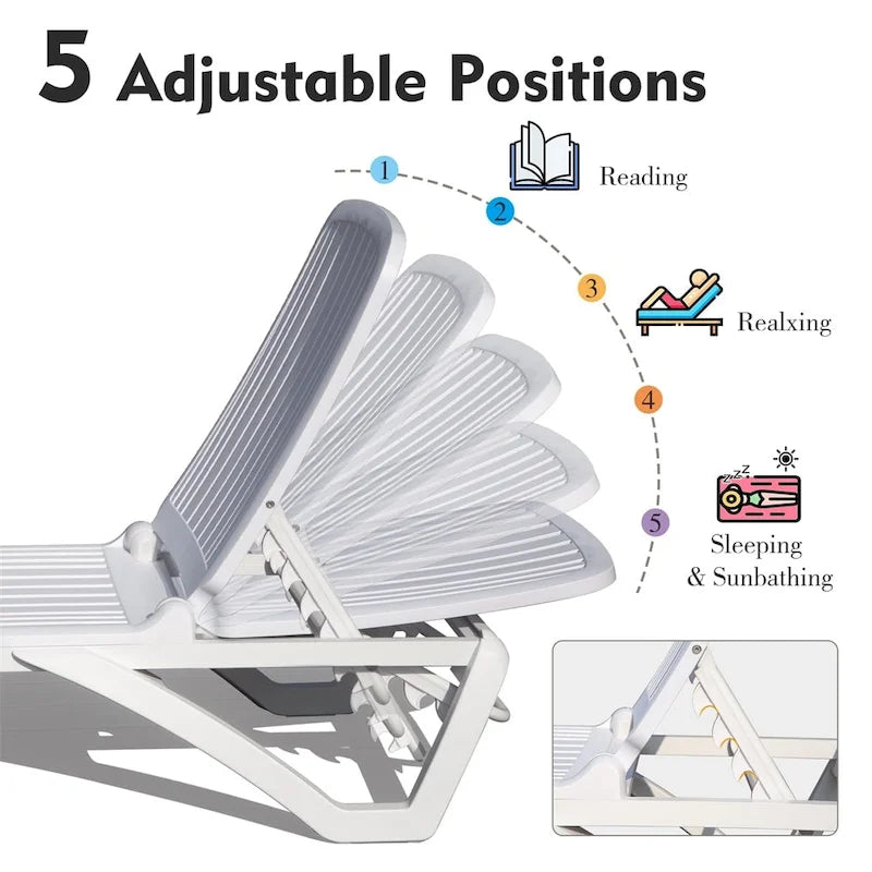 Adjustable Outdoor ABS Chaise Lounge with Wheels