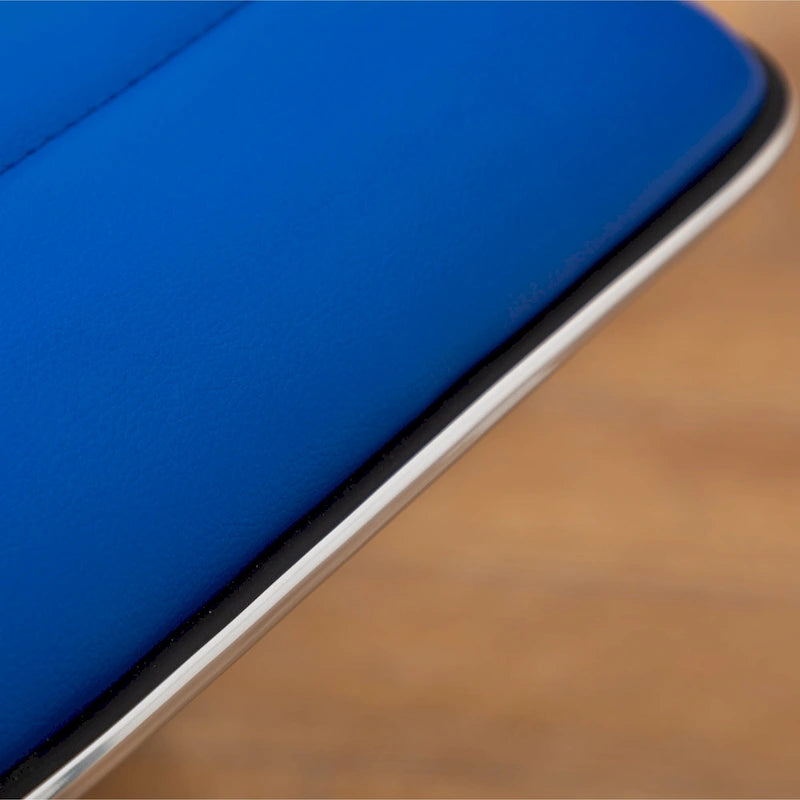 Adjustable and with a lovely swivel, this modern chrome-finished piece allows you to move around at will. Its bonded leather upholstery and robust metal frame are rivaled only by its crisp silhouette and customizable comfort.