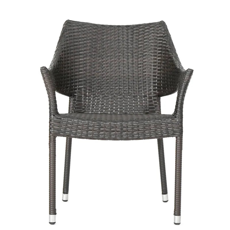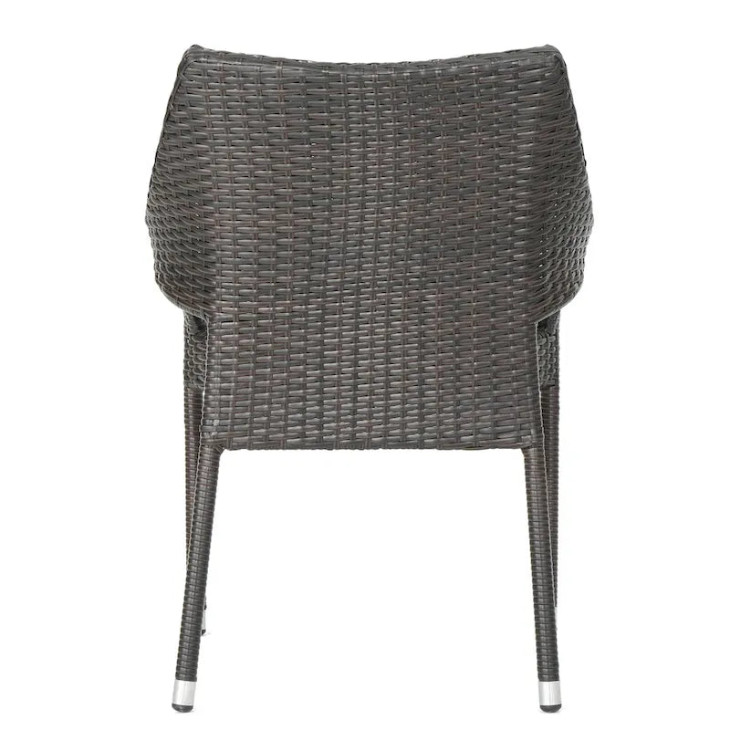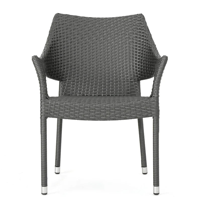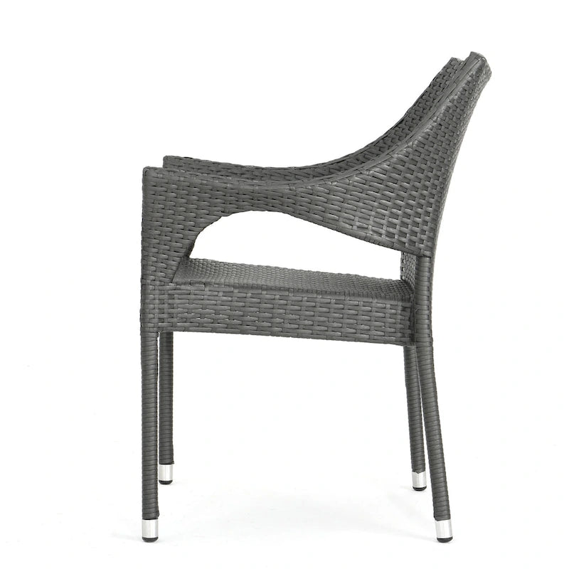 Hosting friends and family in your backyard can be a breeze. With a charming slat panel tabletop and stackable wicker seating, our five-piece dining set combines function and style to create the perfect outdoor lounge area. Featuring a square table with elegantly curved legs made from durable acacia wood, this set is made for impressive luxury while offering enough space for even the most extravagant meal.