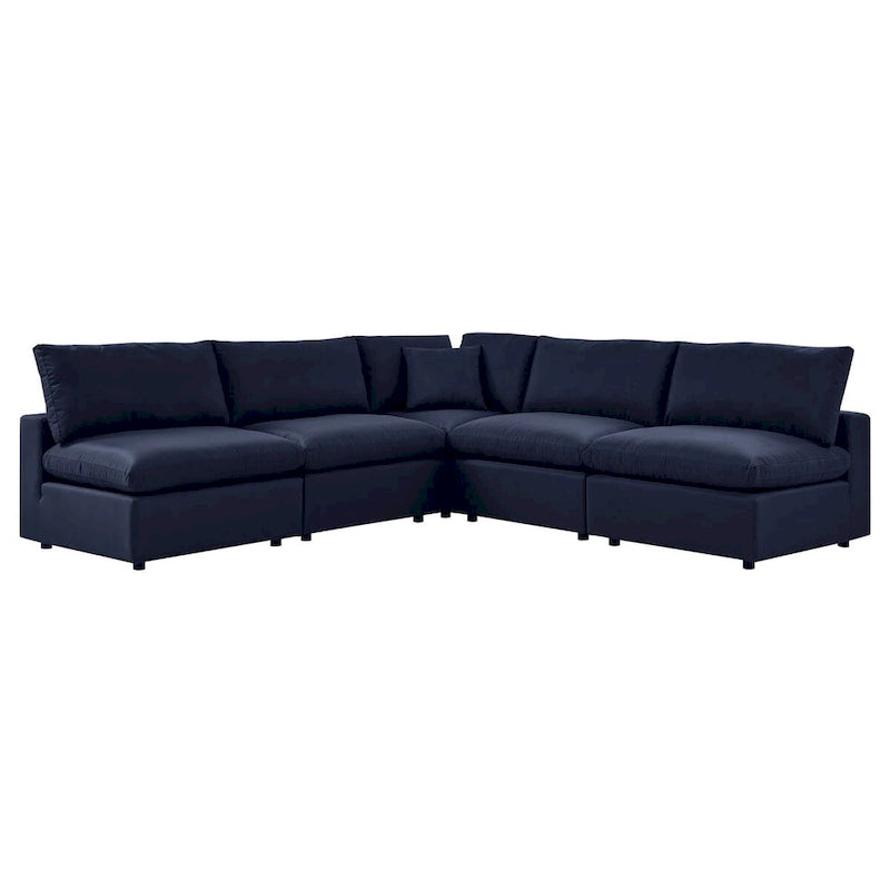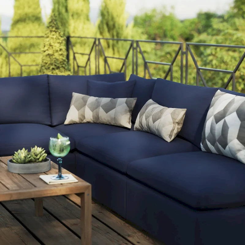 Create the ultimate outdoor retreat with the Commix 5-Piece Outdoor Patio Armless Sectional Sofa. Plush and inviting, this sectional sofa boasts generously padded cushions that are covered in water-repellent, UV-resistant fabric, making it perfect for outdoor entertaining or simply relaxing in the sun. The all-weather construction features a sturdy powder-coated aluminum frame and non-marking foot caps to protect your flooring surfaces. With its clean-lined design and spacious profile, the Commix Outdoor Patio Collection is sure to impress.