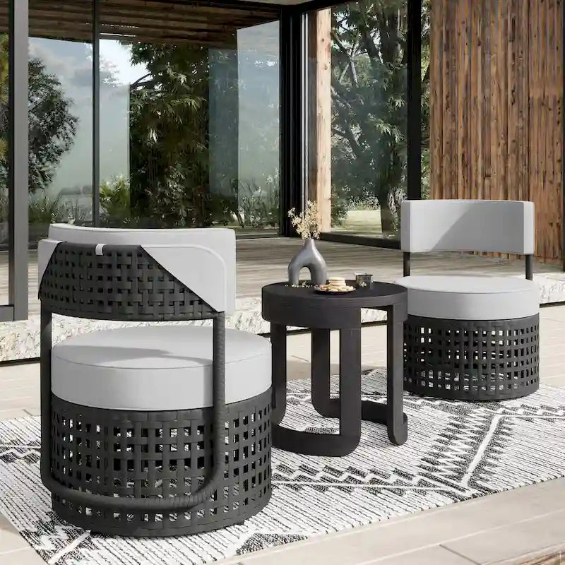 Bring the refreshing coastal atmosphere to your outdoor area with the Corvus Donges 3-piece Outdoor Wicker Conversation Set. This stylish set is made with high-quality PE resin wicker handwoven around a sturdy, rust-free powder-coated aluminum frame, ensuring it can withstand any weather conditions. Perfect for a cozy conversation or a refreshing drink, this set will quickly become your new favorite outdoor spot to unwind.