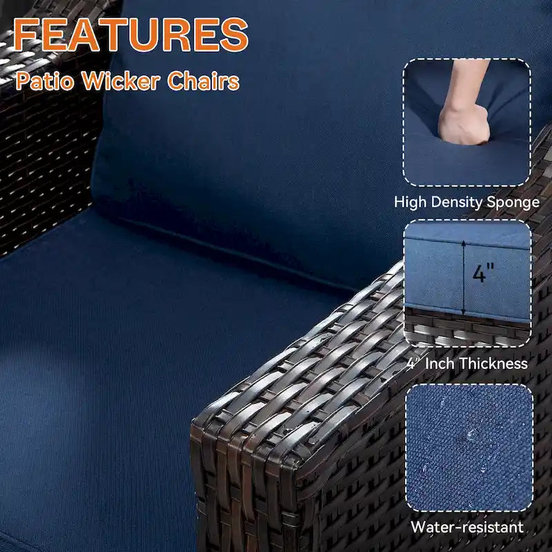 - Premium Quality Olefin Cushions: the chair set comes with detachable cushions that are made of Olefin fabric which can provides strong UV protection and water-resistance with 100% polyester filling and 4 in. cushions can offer you the utmost coziness while sitting on?