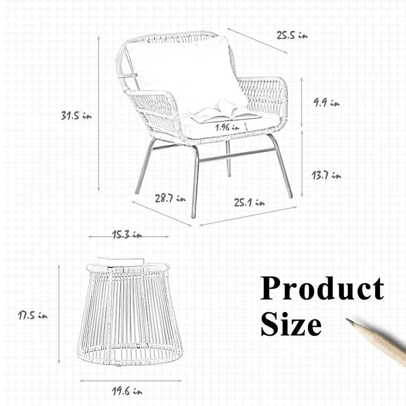 This outdoor BOHO set with a table has an adjustable plastic feet stopper supplying stability when sitting on it. The design of the patio conversation set is simple, classic, and modern. The stable metal legs and elegant side tables offer a sleek look bringing your outdoor space more compliments. The stylish wicker design includes a distinct, openwoven pattern for a Bohemian touch that adds charm to any outdoor space.