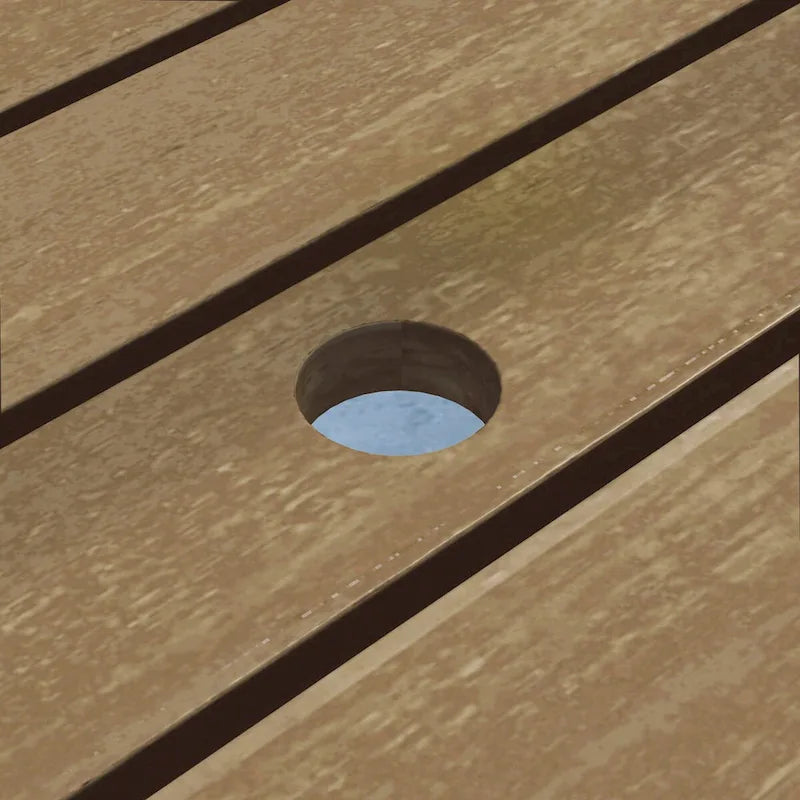 - Center table hole accommodates 2 outdoor umbrellas