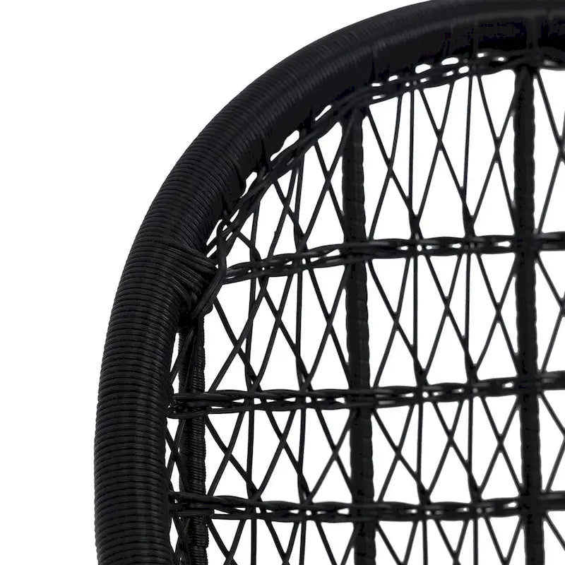 Contemporary shaping and a deep black weave transform all-weather wicker into something modern. Club-style counter seating is supported by a slim, contrasting bronzed grey-finished iron base. Cover or store indoors during inclement weather and when not in use.