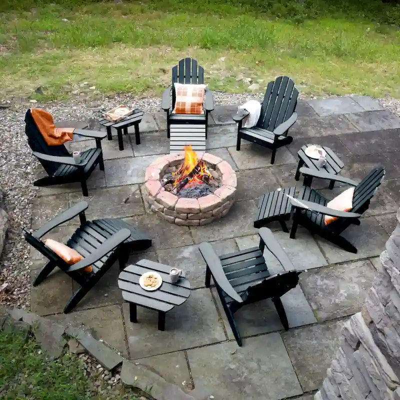 Transform your backyard into a welcoming retreat with a 12-piece Adirondack Patio Conversation Set. Whether you're hosting a party or enjoying a peaceful moment, the set's six chairs, three ottomans, and three side tables offer ample space for seating and serving. The high-grade poly material gives the furniture a sturdy and realistic wood-like appearance, while its weather-resistant and dirt-repelling qualities make it easy to maintain. With a variety of color options available, you can personalize the set to fit your preferences and surroundings.