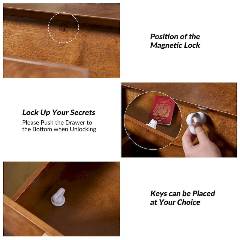 Sufficient Storage Space: This nightstand is designed with both a visible drawer and a discreetly hidden compartment, offering convenient and secure storage for your valuable items like passports, ID cards, or cash. With this functional piece, you can ????keep important belongings easily accessible yet well-protected.?