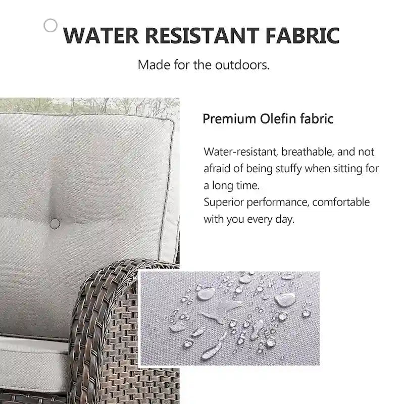 - Beautiful And Durable: Relax in the beautiful outdoors with this perfect furniture set. Our patio wicker swivel chair and loveseat set with high quality foam cushion, comfortable and soft rebound good. The cushion cover is made of olefin outdoor water-resistant fabric. The seat and backrest are made of beautifully woven wicker coupled with ergonomic design, making it a classic upgrade for any porch or patio.