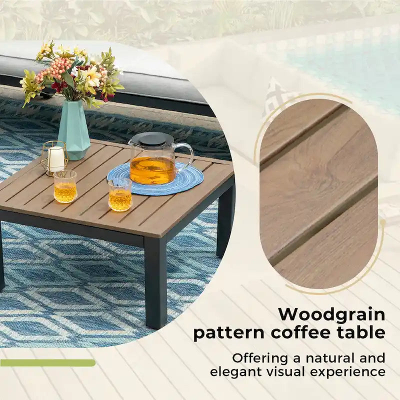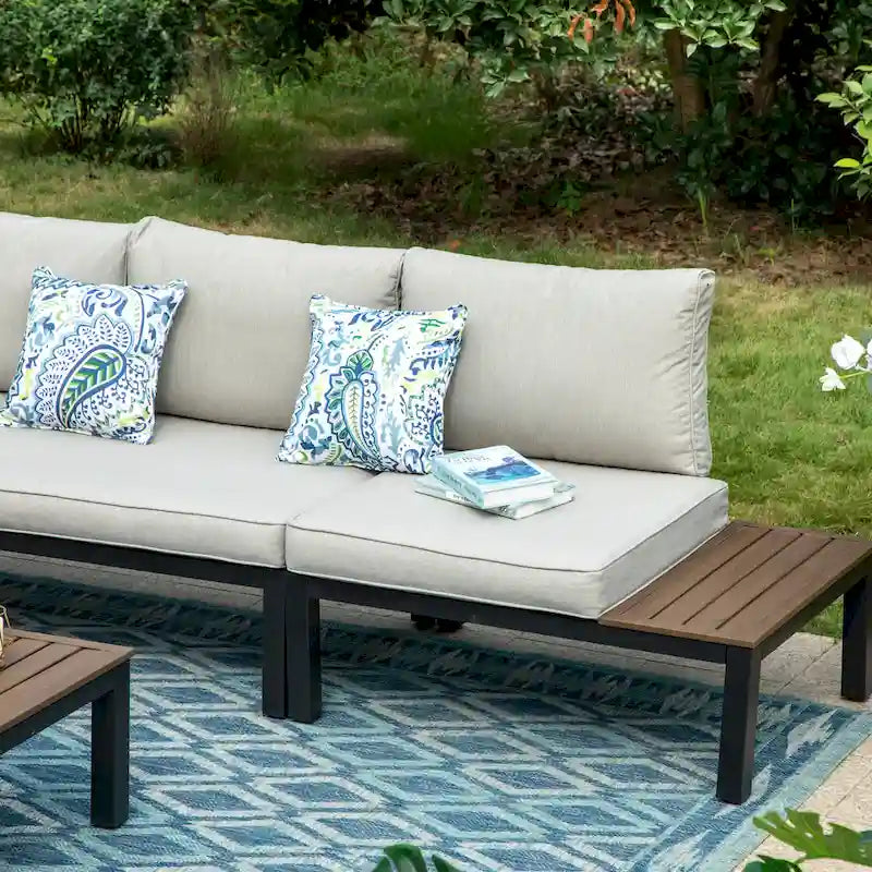 Multiple Combination: This sectional set comes with 2 single sofas/cushions, 2 single sofas with side tables/cushions,1 x 2-Seat sofa/cushion, and 1 table. Each part of this 6- piece patio furniture could be used separately, easily allowing it to be combined into different configurations according to your needs.