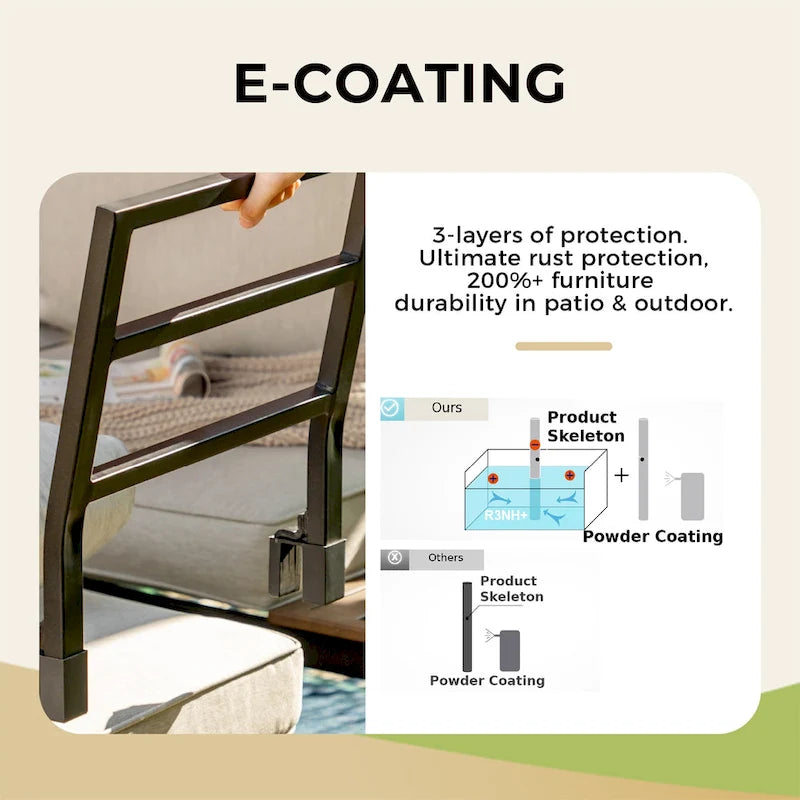 - Rust-proof steel frame with E-coating for corrosion resistance