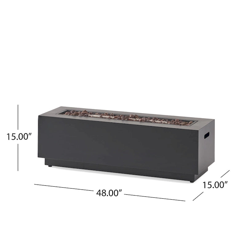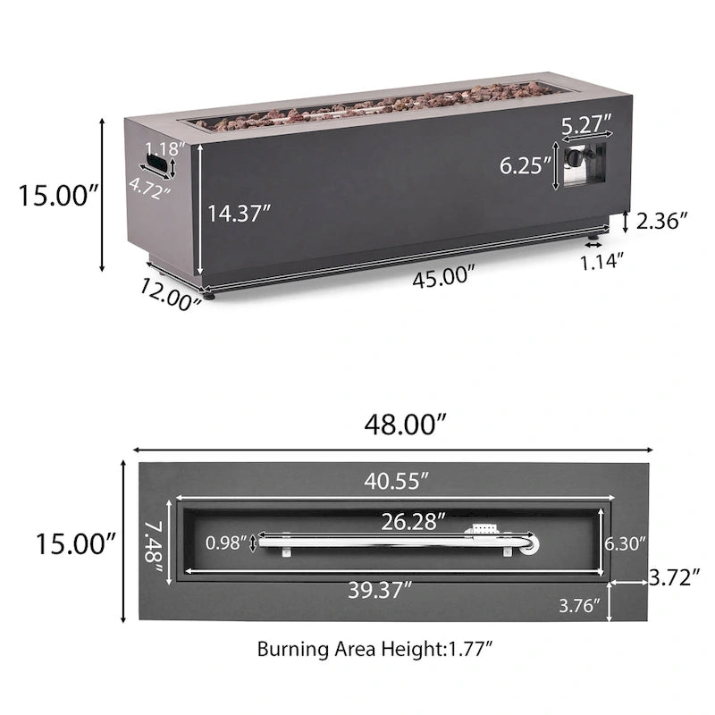 - Fire Pit Dimensions: 15.00 inches deep x 48.00 inches wide x 15.00 inches high