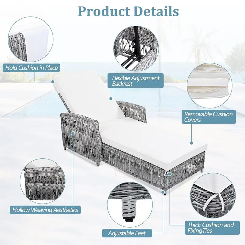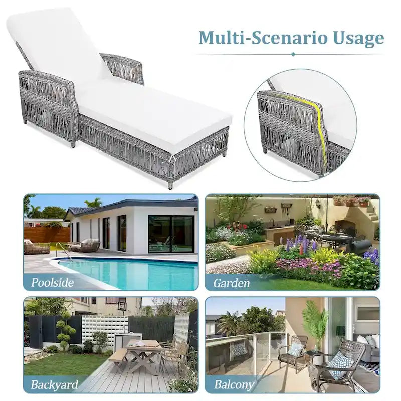Outdoor Adjustable Reclining Wicker Chaise Lounge with Removable Cushion