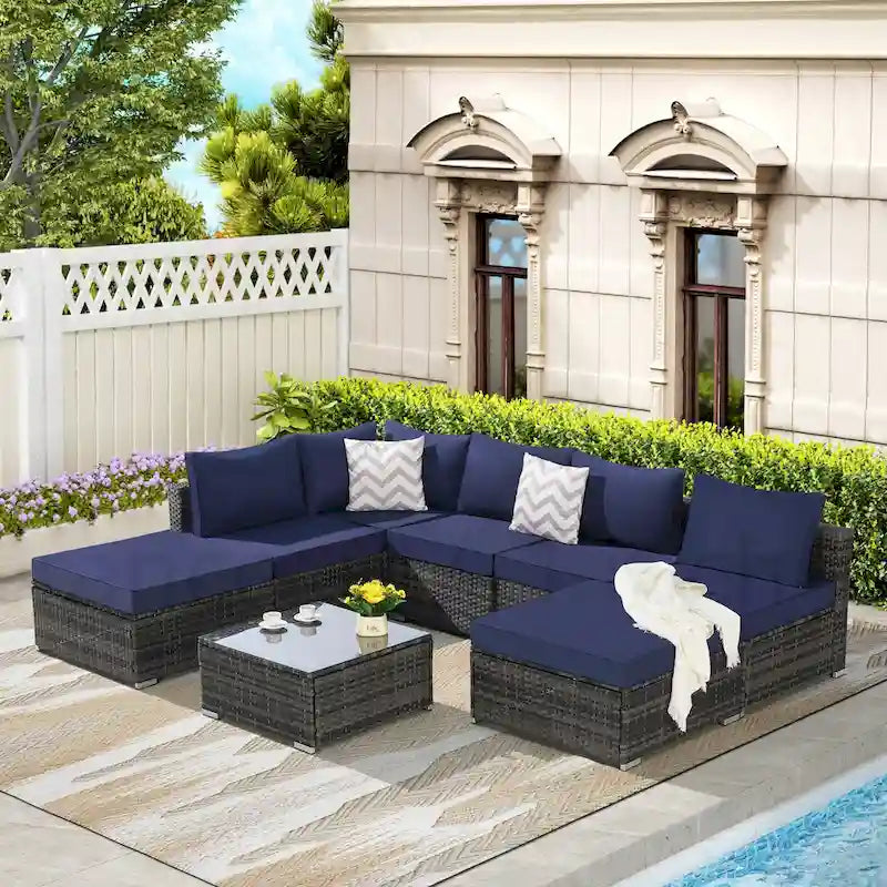 8 Pieces Outdoor Patio Sectional Sofa Couch with Washable Cushions & Glass Coffee Table Description