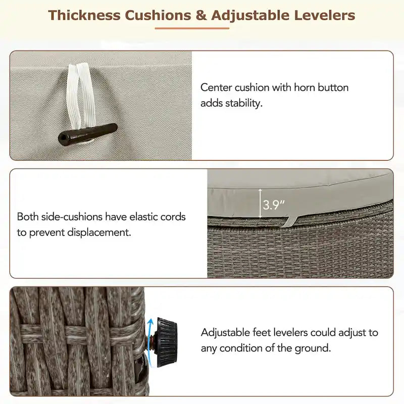 - High-Quality PE Wicker Rattan – Resistant to high temperatures, sunlight, and water for long-lasting outdoor use.