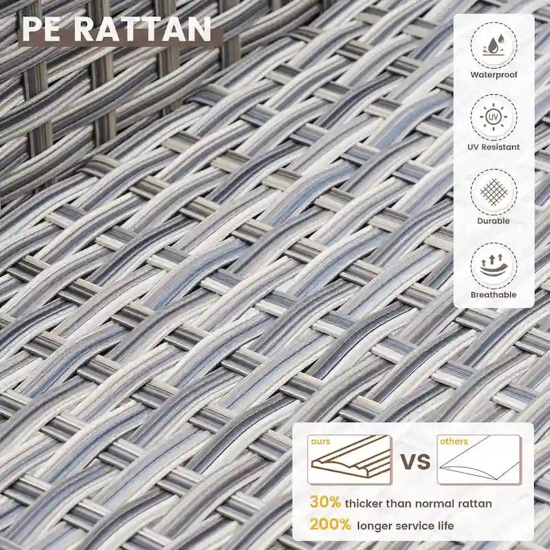 Sturdy Metal Tripod Legs: Each piece of furniture is supported by strong metal tripod legs, ensuring stability and durability on various outdoor surfaces.