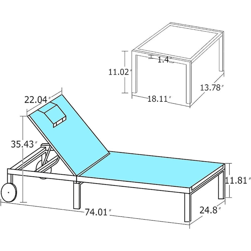 - 【Package Includes】2 X lounge chairs, 1 X table.The lounge chair weights 51 lbs that is suitable to place outside. Simple assembly.