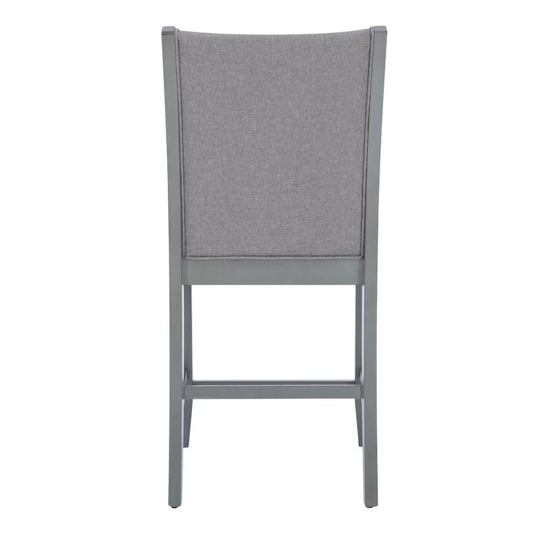 ?Counter height stools in a light grey finish. Can be used with the correlating dining set or as a stand-alone dining stool. The seat and back are done in a durable and easy-to-clean 100 percent polyester cover. Kick plate on the base of the stool.