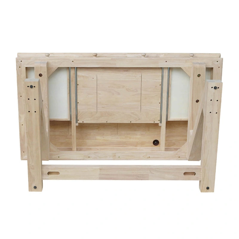 Furnish your office or home workspace with a natural look when you add this wooden executive desk featuring a zodiac base. Store documents, client files, or personal items in the included inside drawer that features wooden knobs and full-extension glides for convenience. Left unfinished so you can match any decor. Comes ready to assemble in 2 boxes.