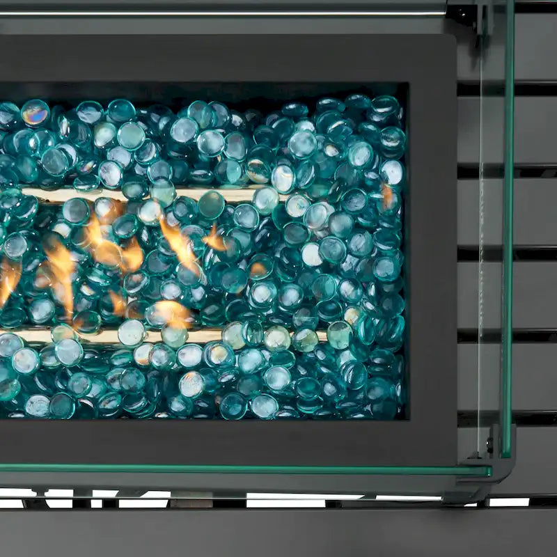 - Glass paneled windshield is elegant and keeps flame intact and heat evenly distributed