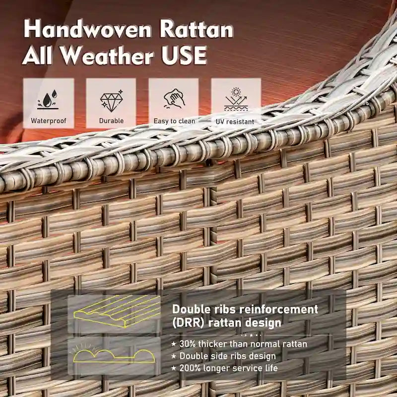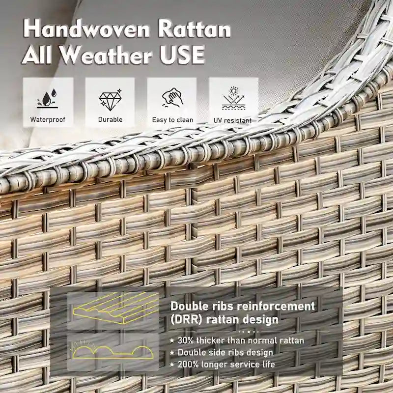 - Handwoven weather-resistant PE rattan