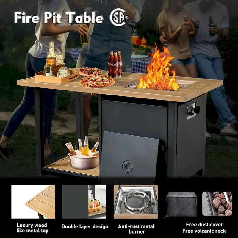- Fire table can be converted into an outdoor dining table with the lid covered